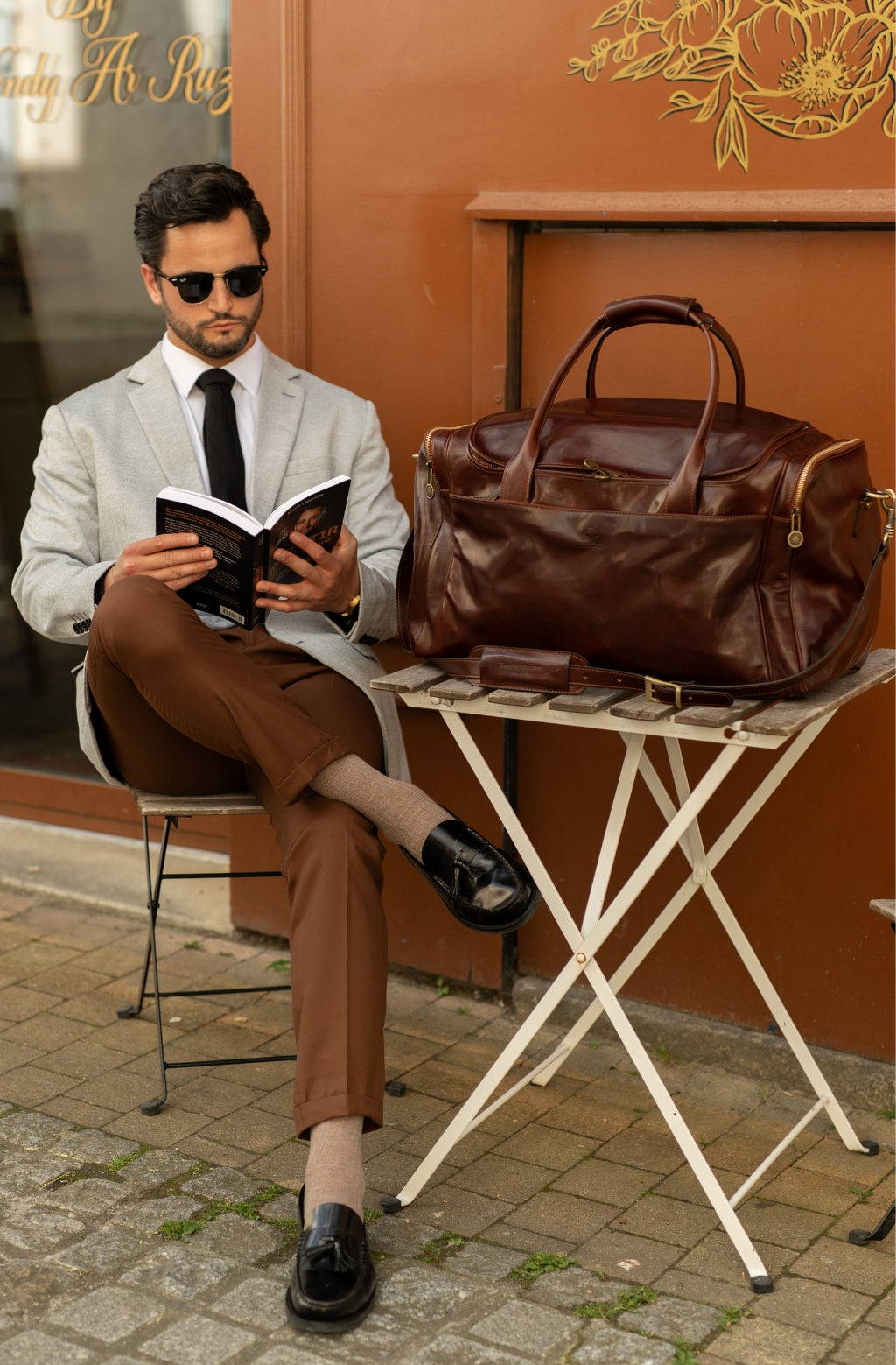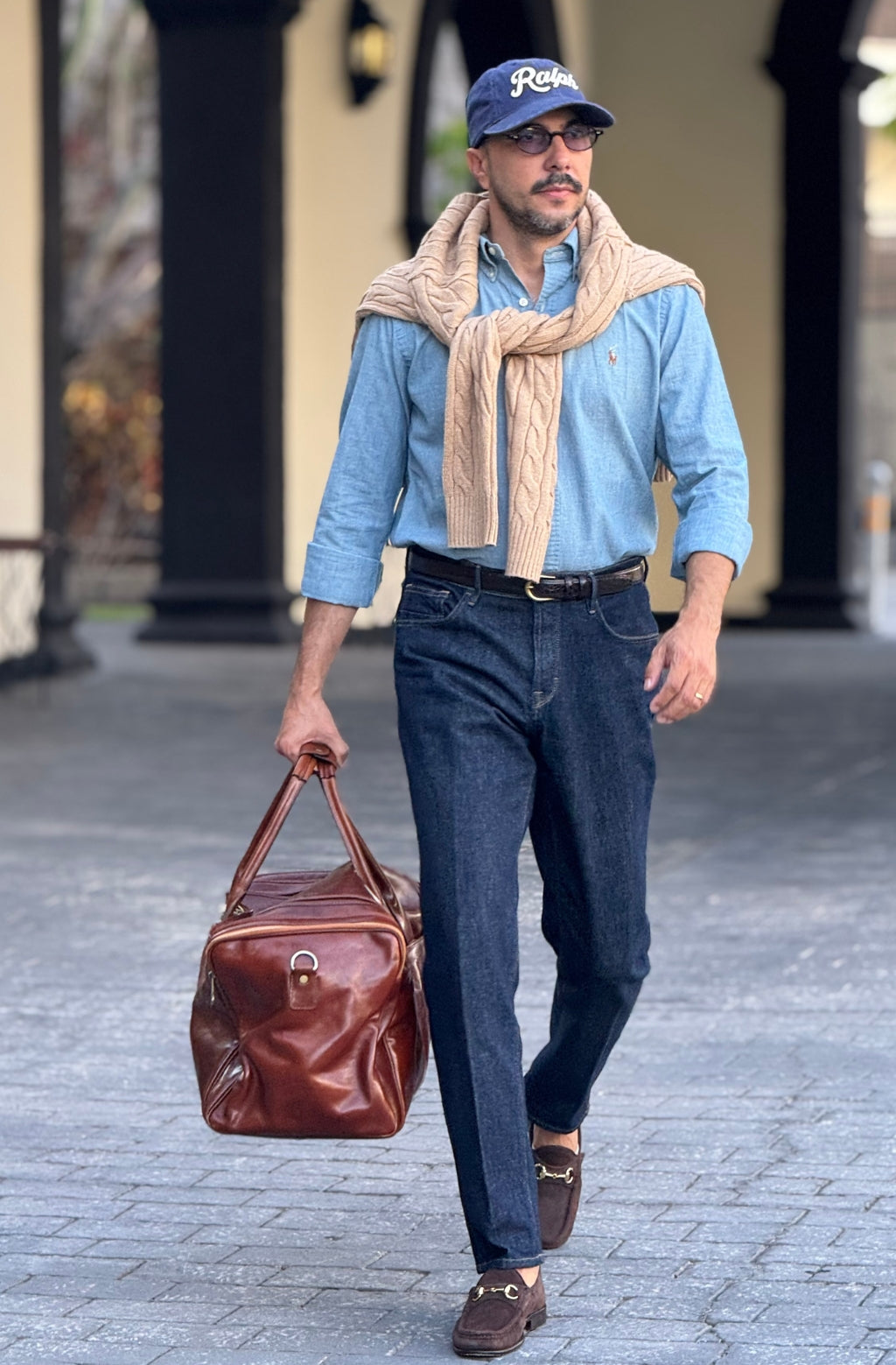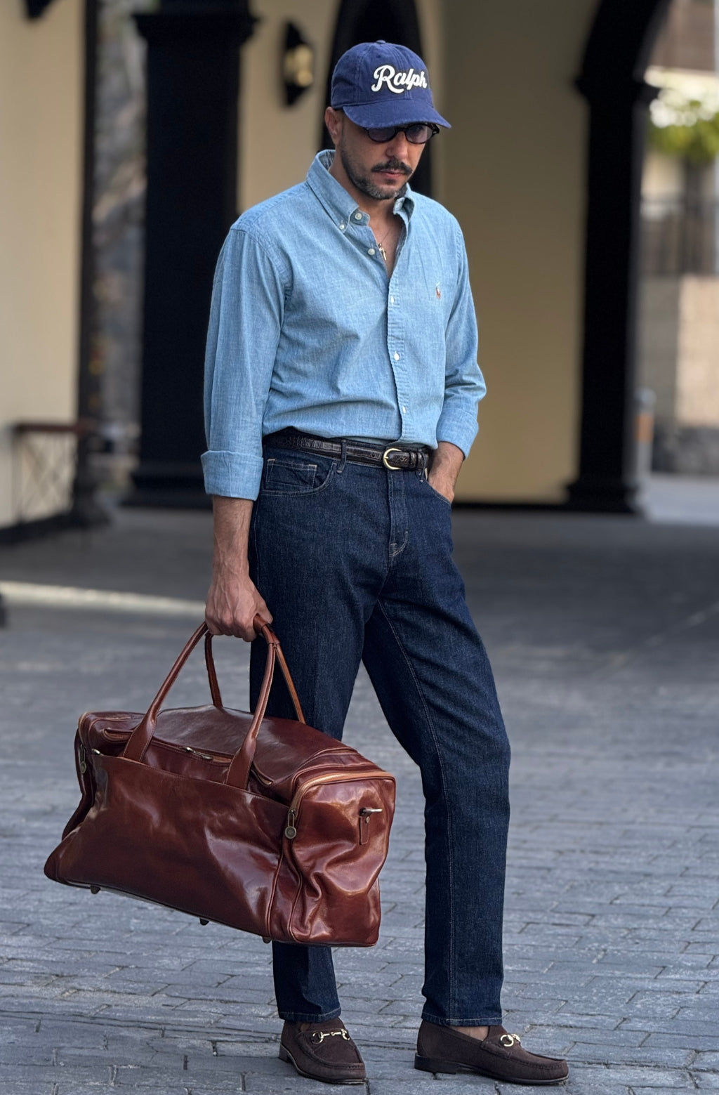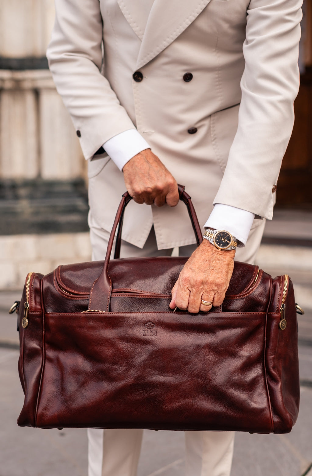 Time Resistance sélectionne un cuir italien Vachetta : pleine fleur, tanné végétal et teint à la main. Il se pare d’une patine noble avec le temps.