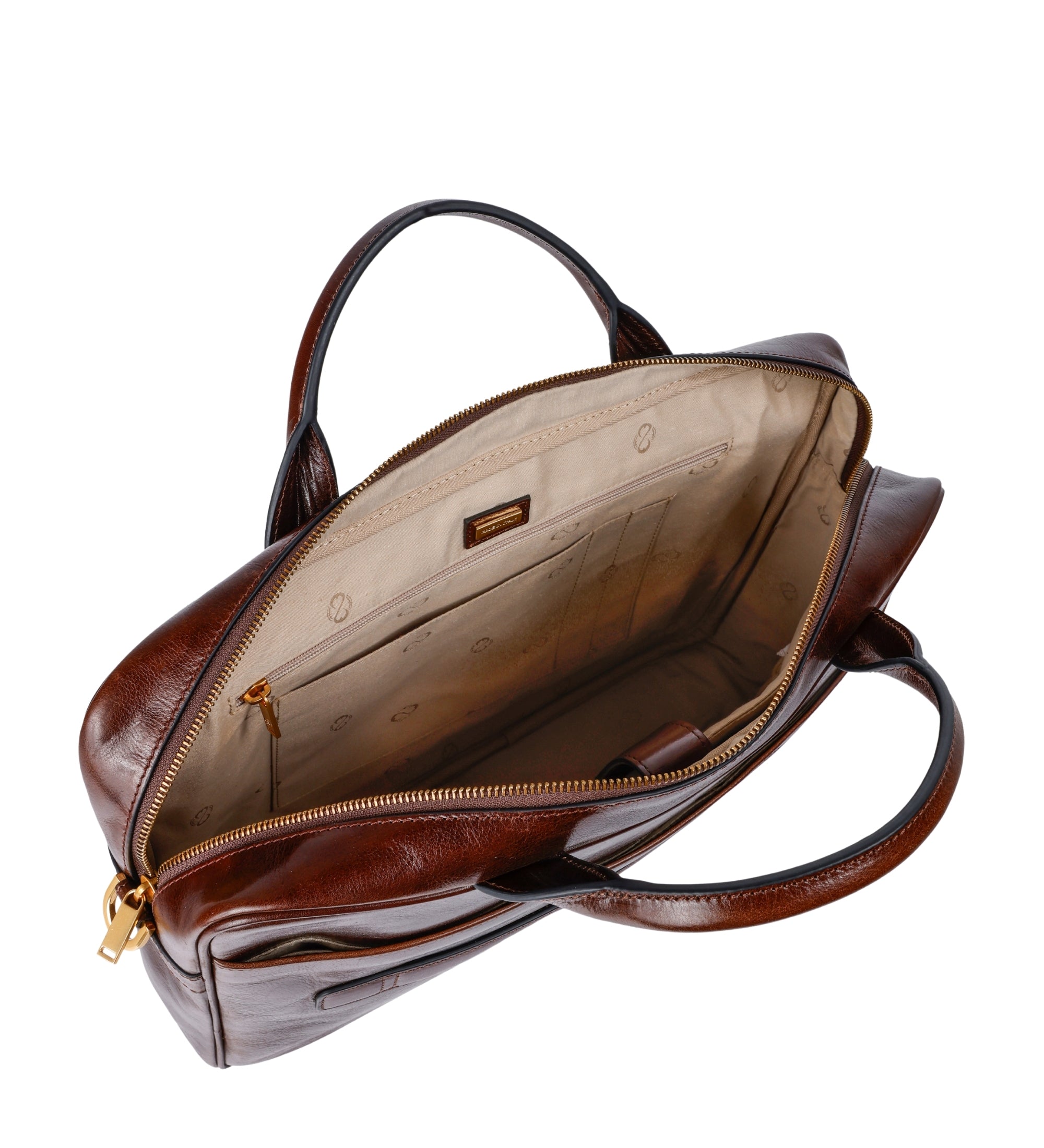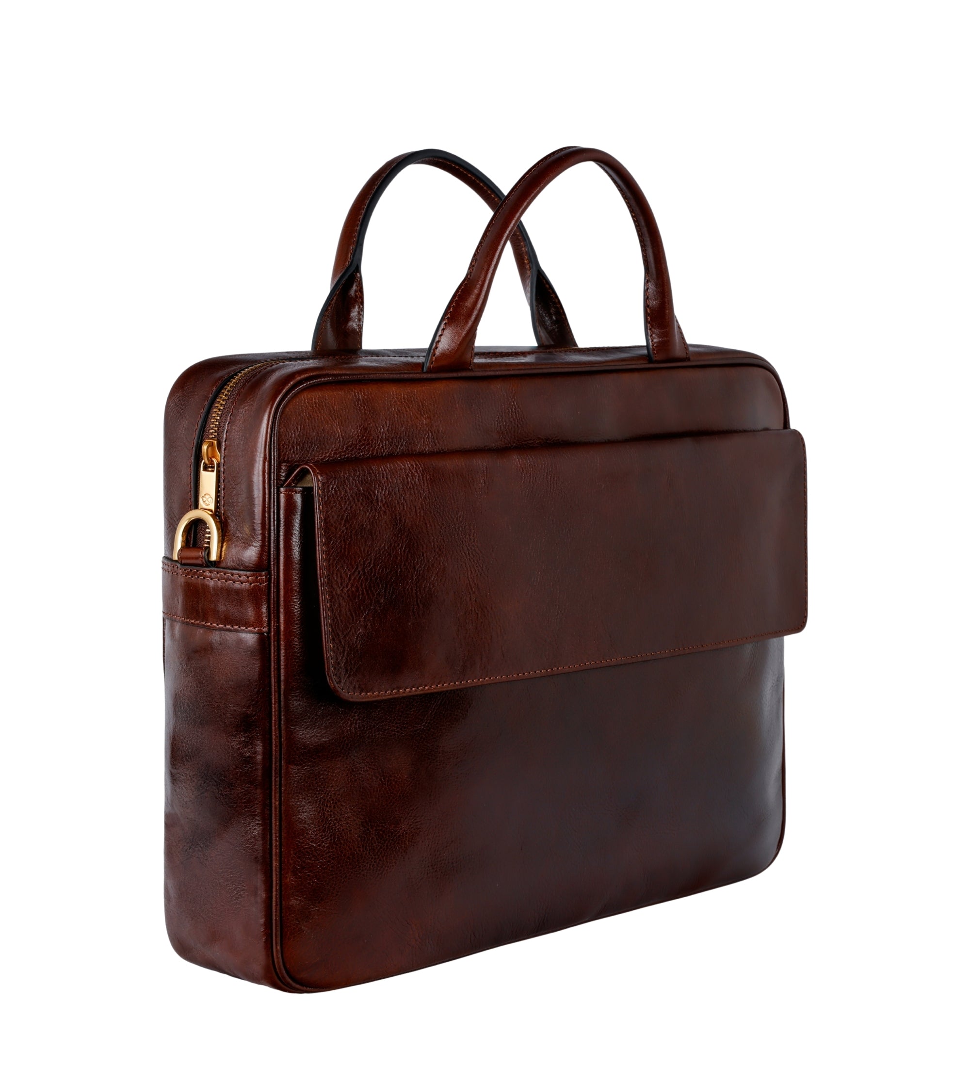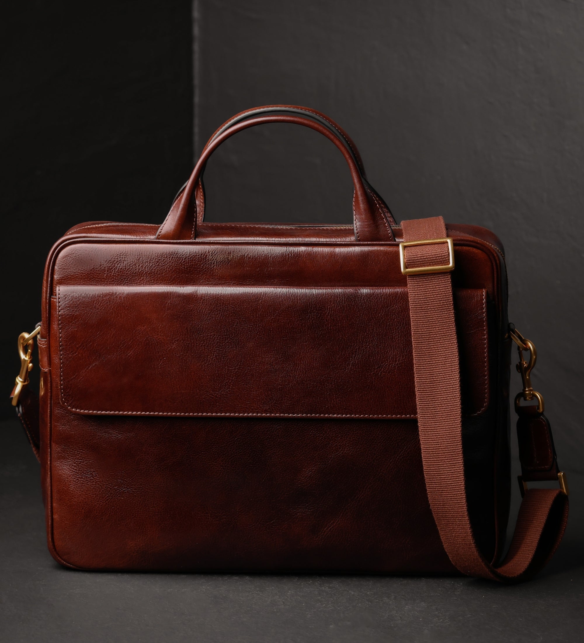The Sheltering Sky - cette sacoche en cuir est le compagnon idéal pour le travail ou les études. Son aspect solide répond parfaitement aux besoins des hommes et des femmes. Fabriqué en cuir italien pleine fleur, il est doté d’une sangle trolley et d’une bandoulière amovible, ce qui le rend idéal pour voyager. Ses compartiments spacieux peuvent facilement accueillir des documents A4, des dossiers et un ordinateur portable 15 pouces. Si cela ne suffisait pas, nous avons fait une poche supplémentaire à rabat sur le devant avec une fermeture magnétique extra-forte, idéale pour garder vos objets essentiels facilement accessibles.