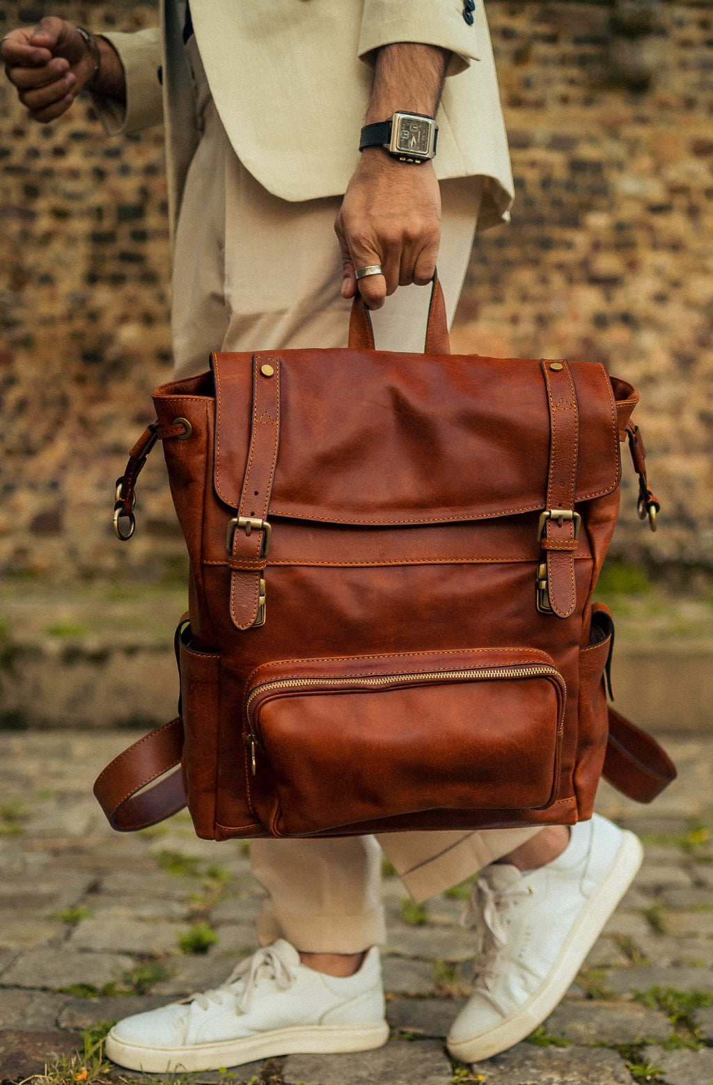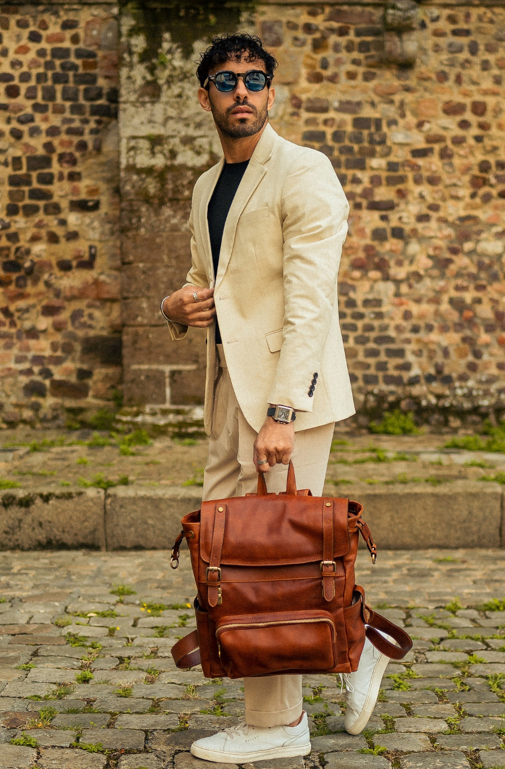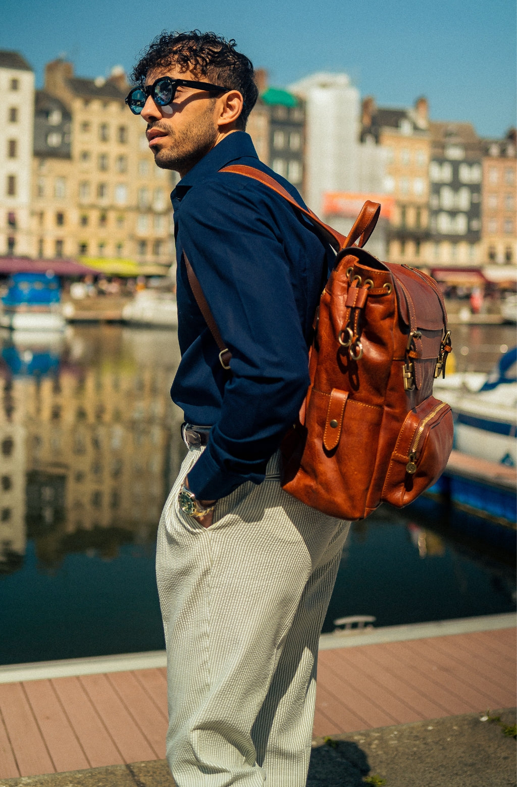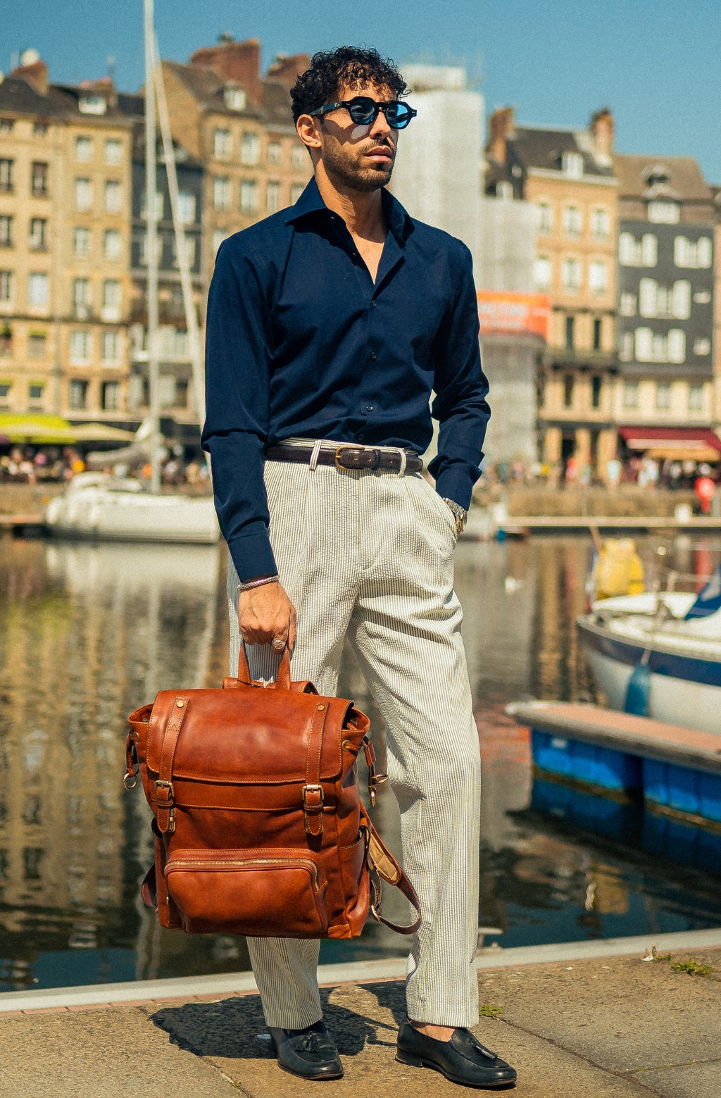 Time Resistance sélectionne un cuir italien Vachetta : pleine fleur, tanné végétal et teint à la main. Il se pare d’une patine noble avec le temps.