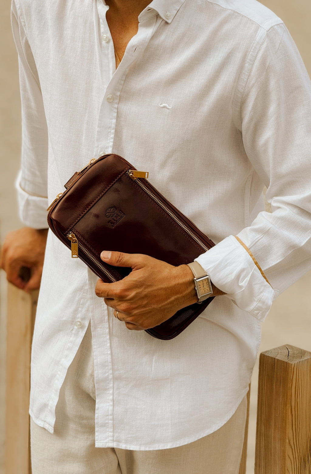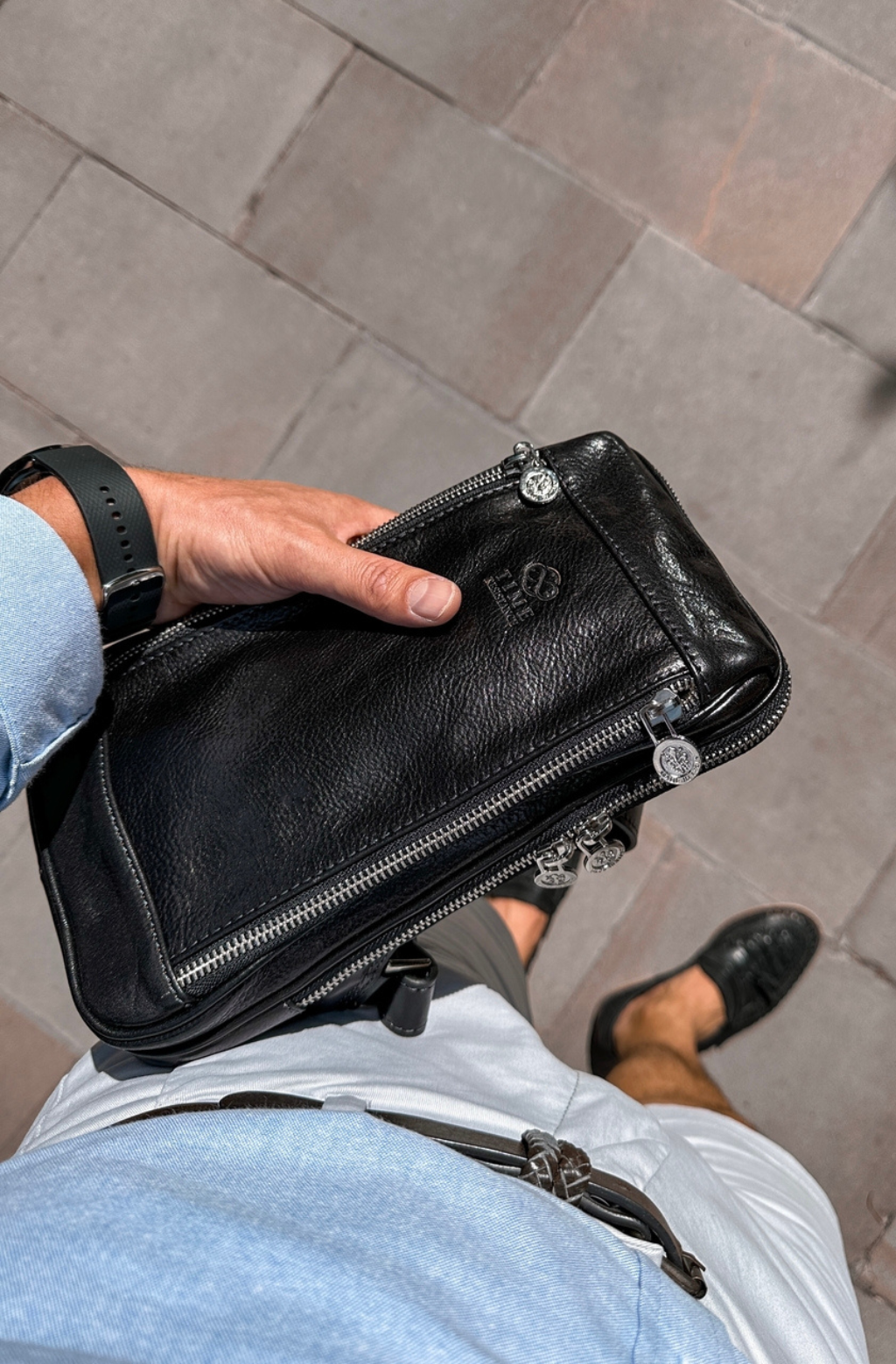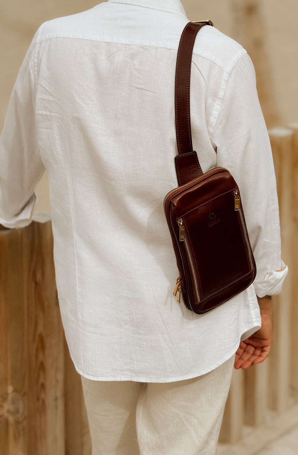Ce sac bandoulière en cuir italien a été conçu pour maximiser le confort en voyage. Notre sac de poitrine en cuir pleine fleur Kim peut être porté sur la poitrine et sur le dos. Bien ajusté au corps, ce sac banane de qualité supérieure n’entrave ni les mouvements ni l’esprit de voyage.