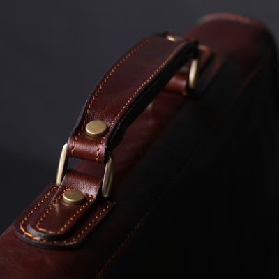 Time Resistance sélectionne un cuir italien Vachetta : pleine fleur, tanné végétal et teint à la main. Il se pare d’une patine noble avec le temps.