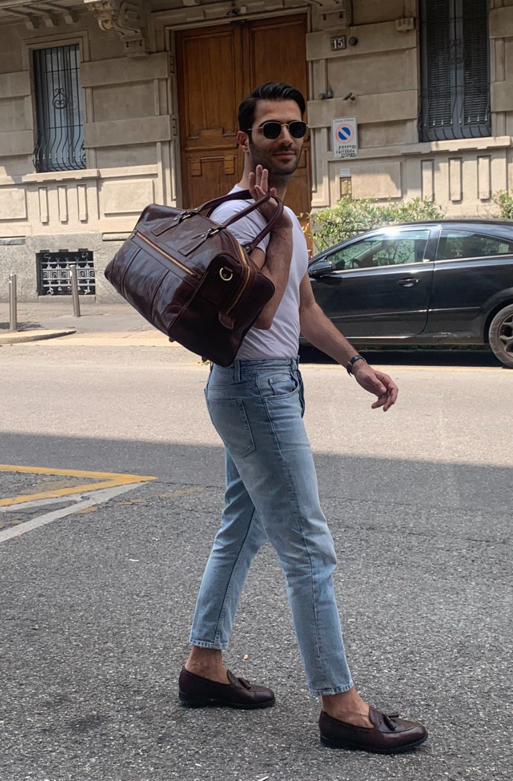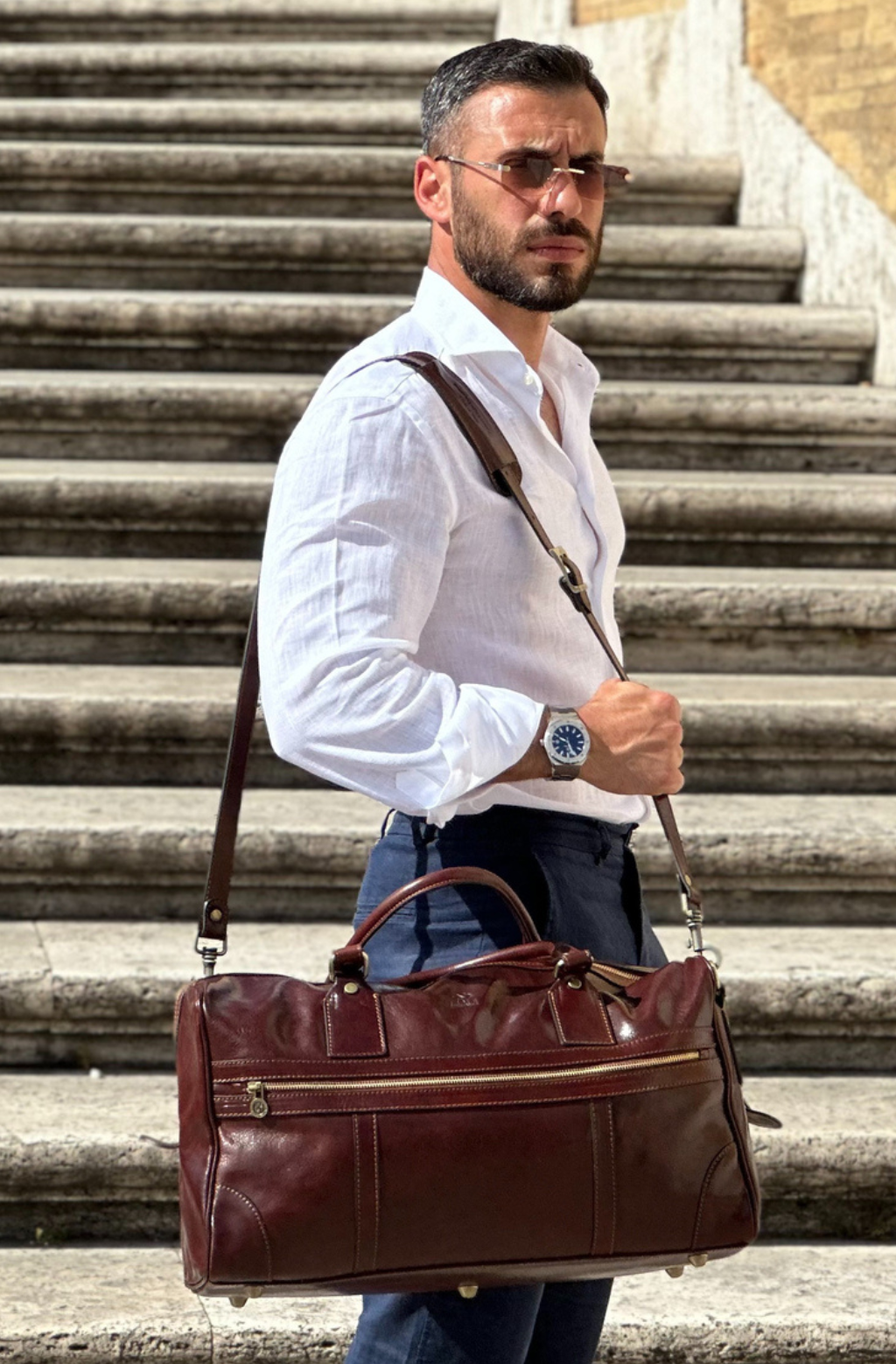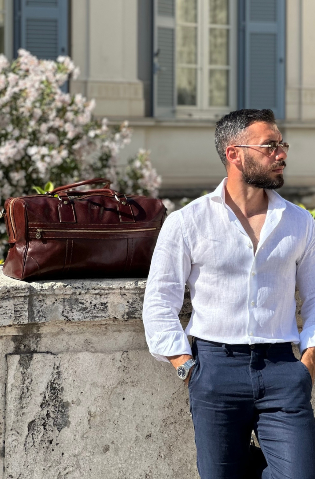 Dans l’univers du voyage, To the Lighthouse apparaît comme un compagnon fidèle, témoin silencieux des aventures à venir. Confectionné avec le plus grand soin, son extérieur robuste évoque non seulement la résilience, mais promet aussi de belles aventures. Orné de deux élégantes sangles verticales en cuir et de renforts à chaque coin, il allie forme et fonctionnalité, apportant une touche d’élégance intemporelle à son design tout en offrant un soutien supplémentaire à vos aventures. Dans ses limites spacieuses, les souvenirs trouvent refuge, nichés au cœur d’un intérieur usé. À chaque pas, il devient plus qu'un simple sac : il se transforme en un confident de confiance, le gardien de précieux moments. Laissez To the Lighthouse devenir votre fidèle compagnon sur les chemins tortueux du voyage, un symbole de résilience au cœur des paysages changeants de la grande aventure de la vie.