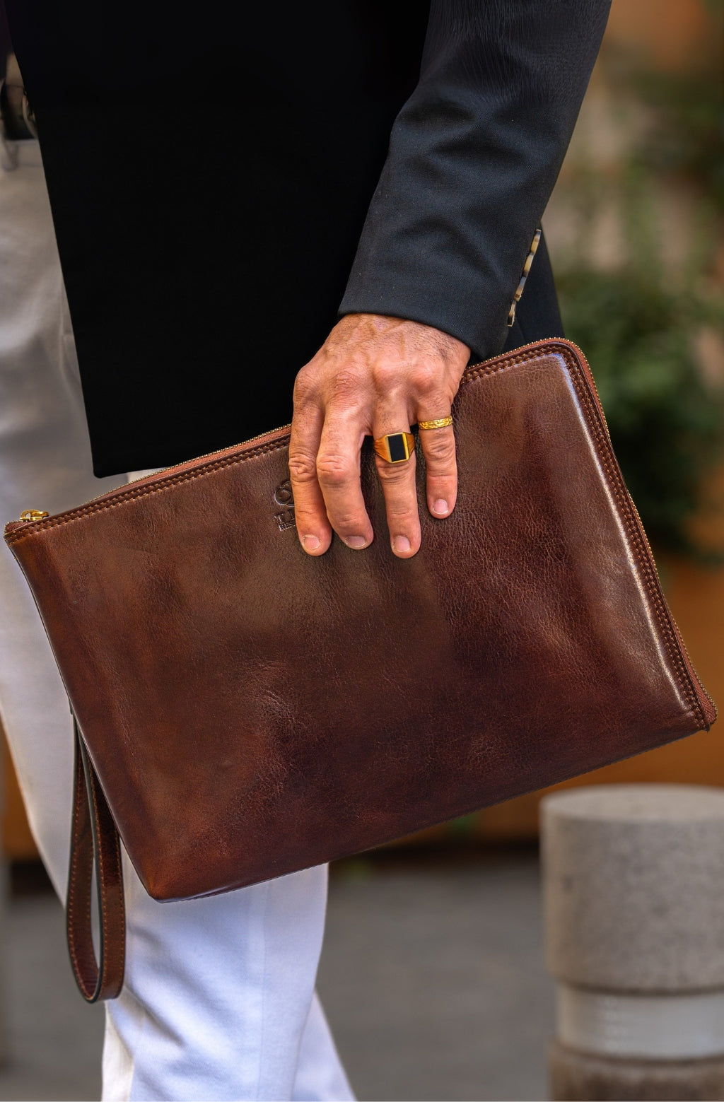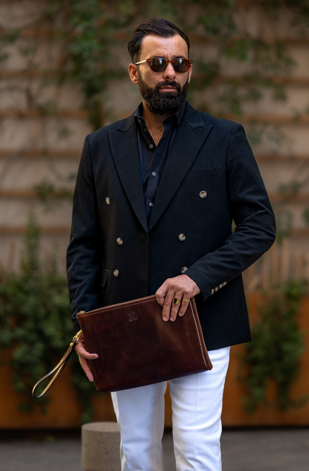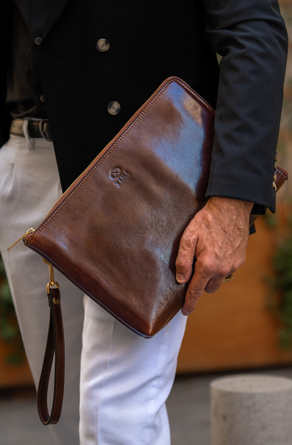 Une pochette masculine en cuir italien. Son design minimaliste est parfait pour ceux qui apprécient la simplicité sans renoncer à l’élégance. Elle accueillera tous vos objets essentiels du quotidien, notamment votre smartphone, une petite tablette, etc., et donnera un aspect professionnel avec une touche d’élégance vestimentaire.