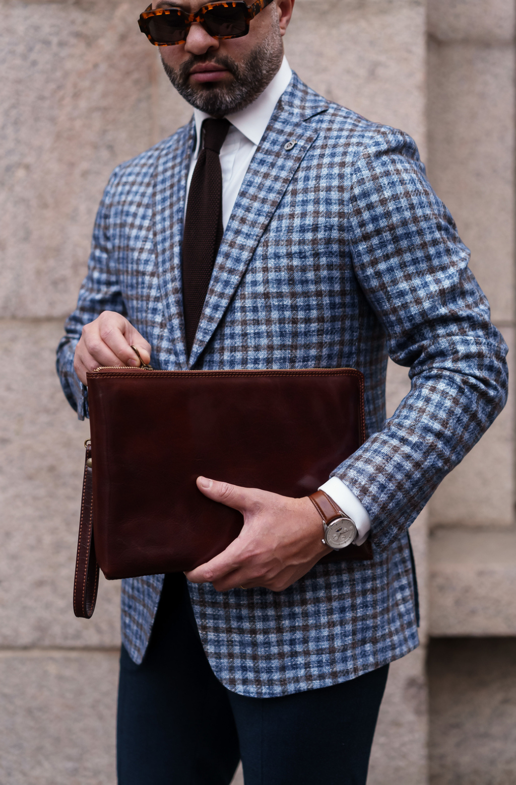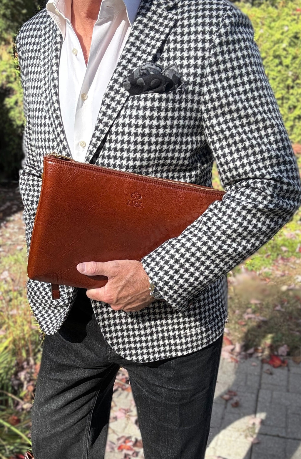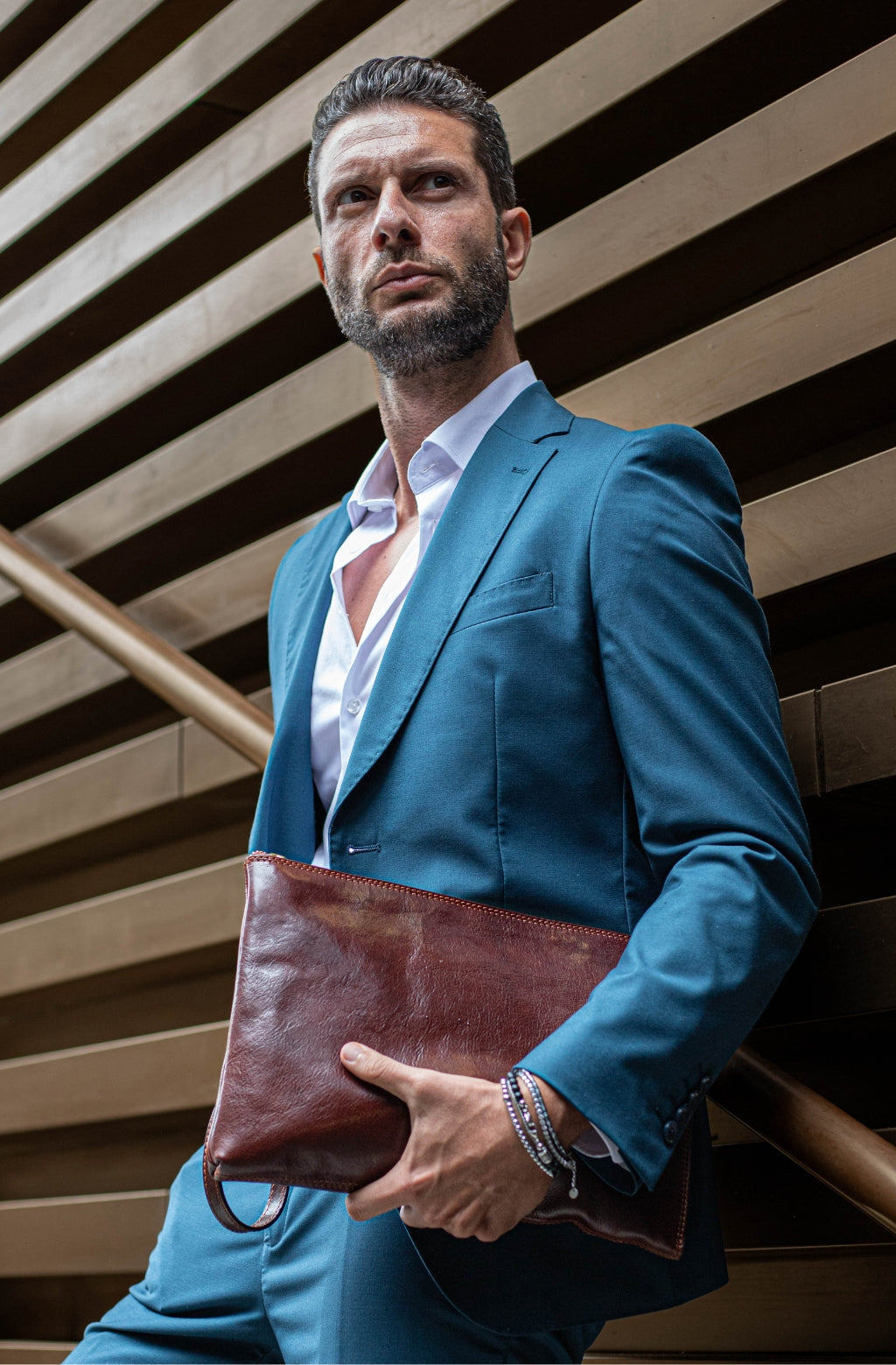 Une pochette masculine en cuir italien. Son design minimaliste est parfait pour ceux qui apprécient la simplicité sans renoncer à l’élégance. Elle accueillera tous vos objets essentiels du quotidien, notamment votre smartphone, une petite tablette, etc., et donnera un aspect professionnel avec une touche d’élégance vestimentaire.