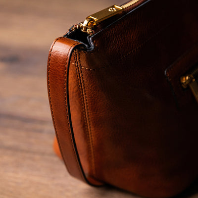 Time Resistance sélectionne un cuir italien Vachetta : pleine fleur, tanné végétal et teint à la main. Il se pare d’une patine noble avec le temps.