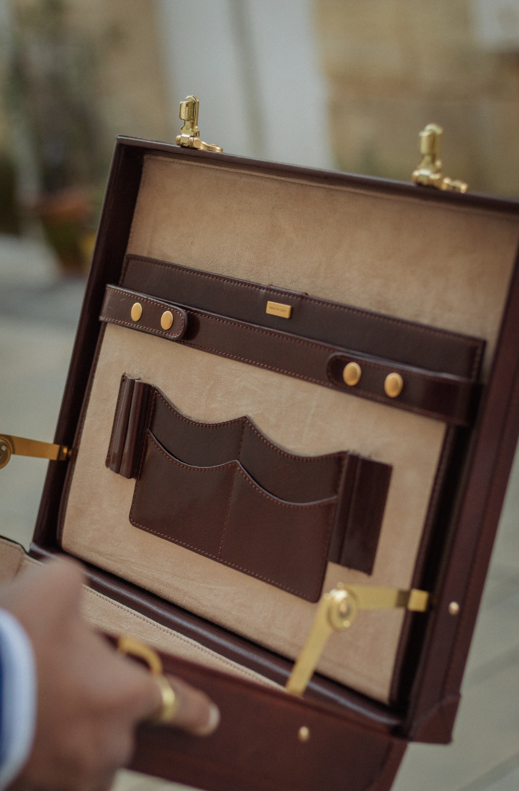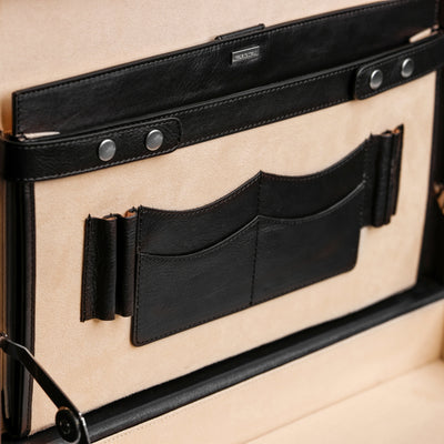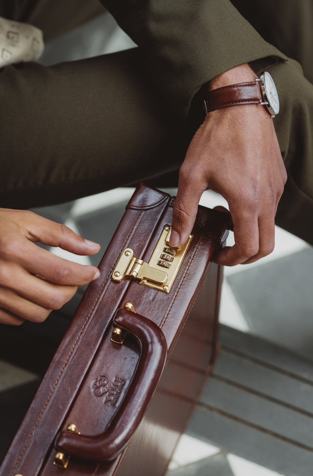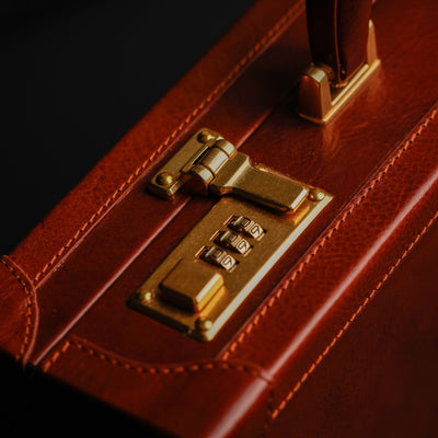 Time Resistance sélectionne un cuir italien Vachetta : pleine fleur, tanné végétal et teint à la main. Il se pare d’une patine noble avec le temps.