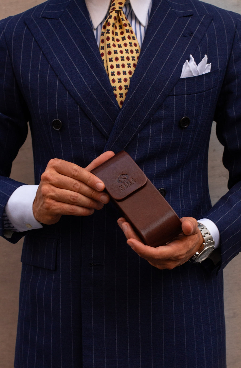 Time Resistance sélectionne un cuir italien Vachetta : pleine fleur, tanné végétal et teint à la main. Il se pare d’une patine noble avec le temps.