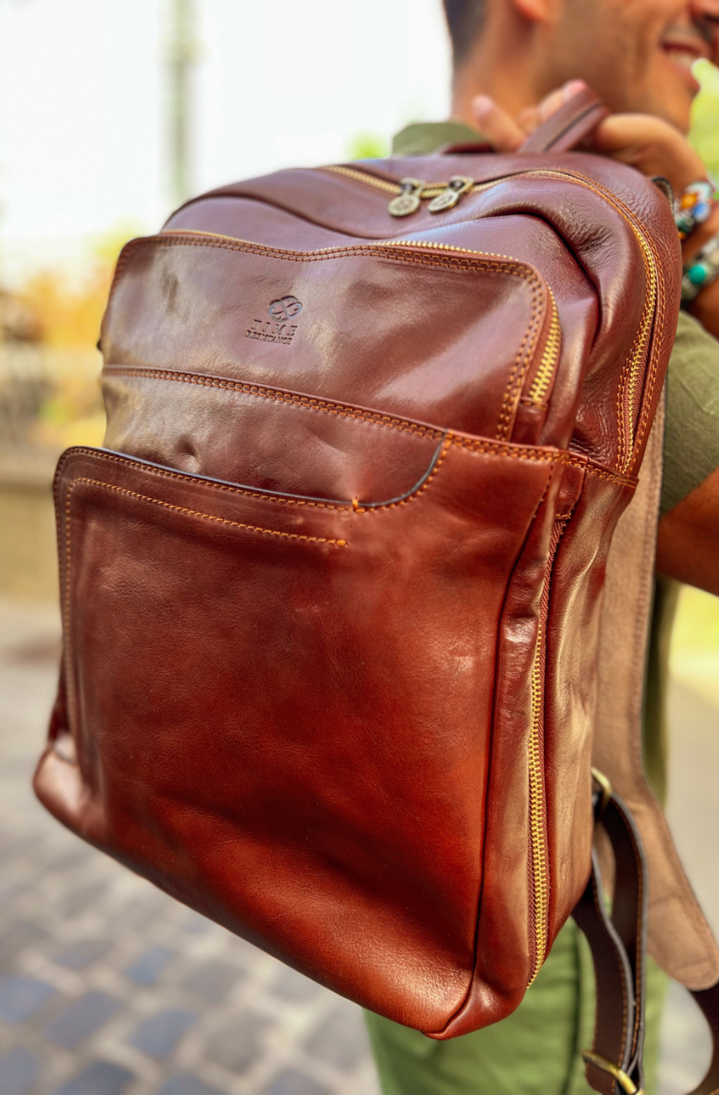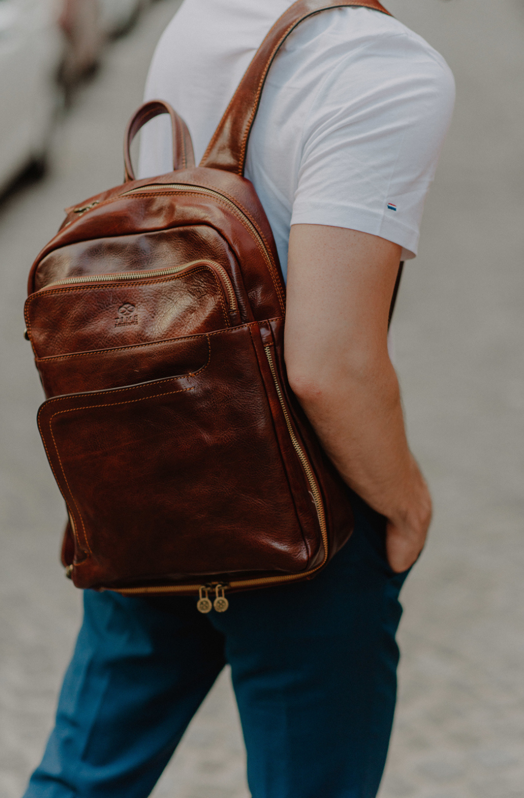 Time Resistance sélectionne un cuir italien Vachetta : pleine fleur, tanné végétal et teint à la main. Il se pare d’une patine noble avec le temps.