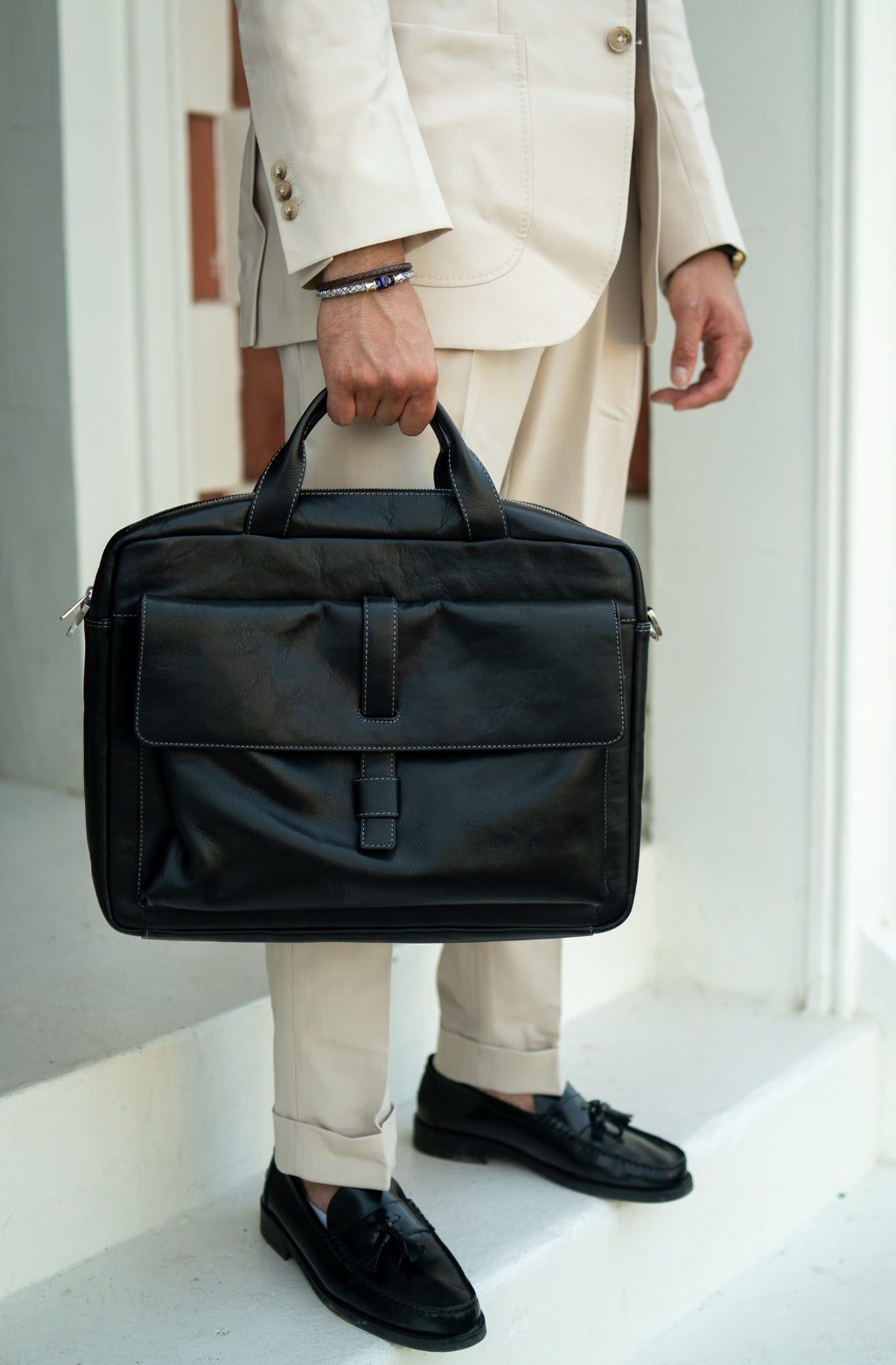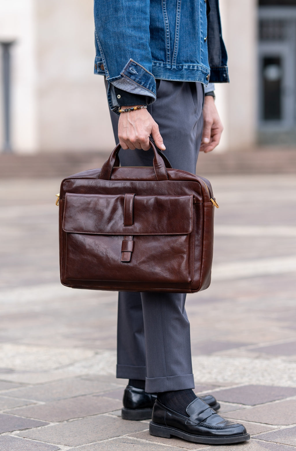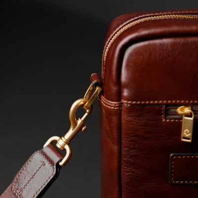 Time Resistance sélectionne un cuir italien Vachetta : pleine fleur, tanné végétal et teint à la main. Il se pare d’une patine noble avec le temps.