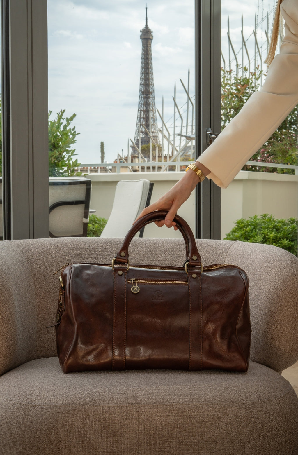 Time Resistance sélectionne un cuir italien Vachetta : pleine fleur, tanné végétal et teint à la main. Il se pare d’une patine noble avec le temps.