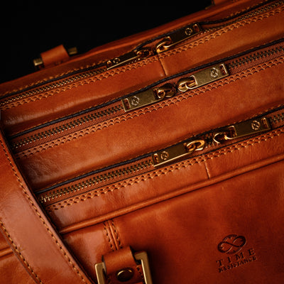 Time Resistance sélectionne un cuir italien Vachetta : pleine fleur, tanné végétal et teint à la main. Il se pare d’une patine noble avec le temps.