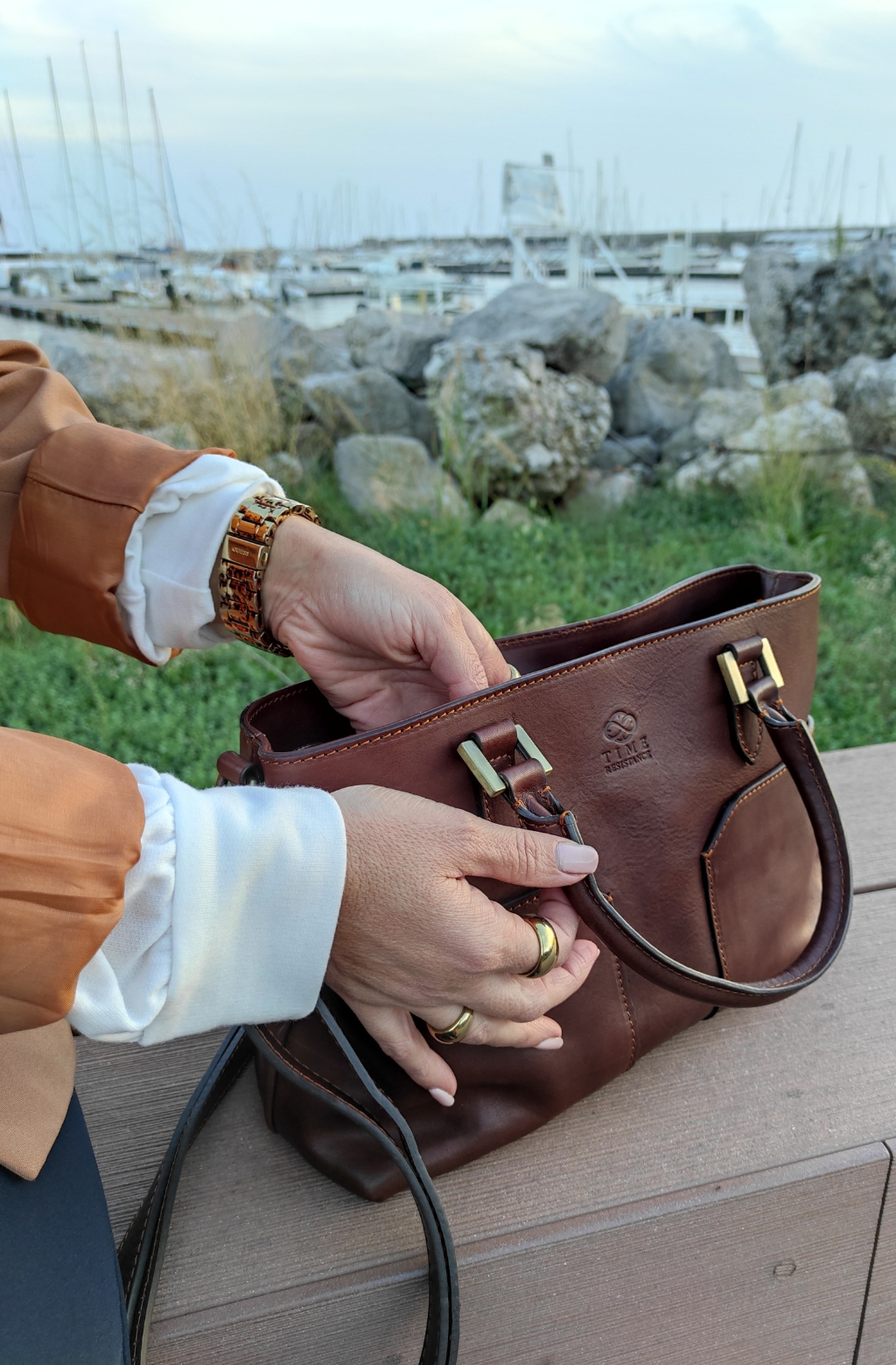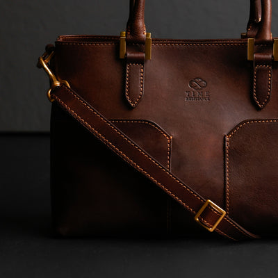 Time Resistance sélectionne un cuir italien Vachetta : pleine fleur, tanné végétal et teint à la main. Il se pare d’une patine noble avec le temps.