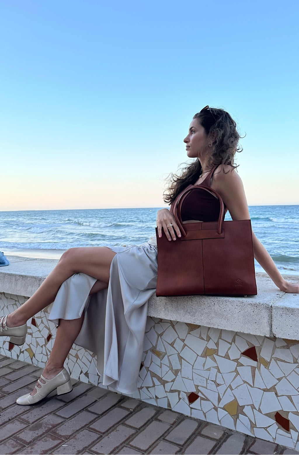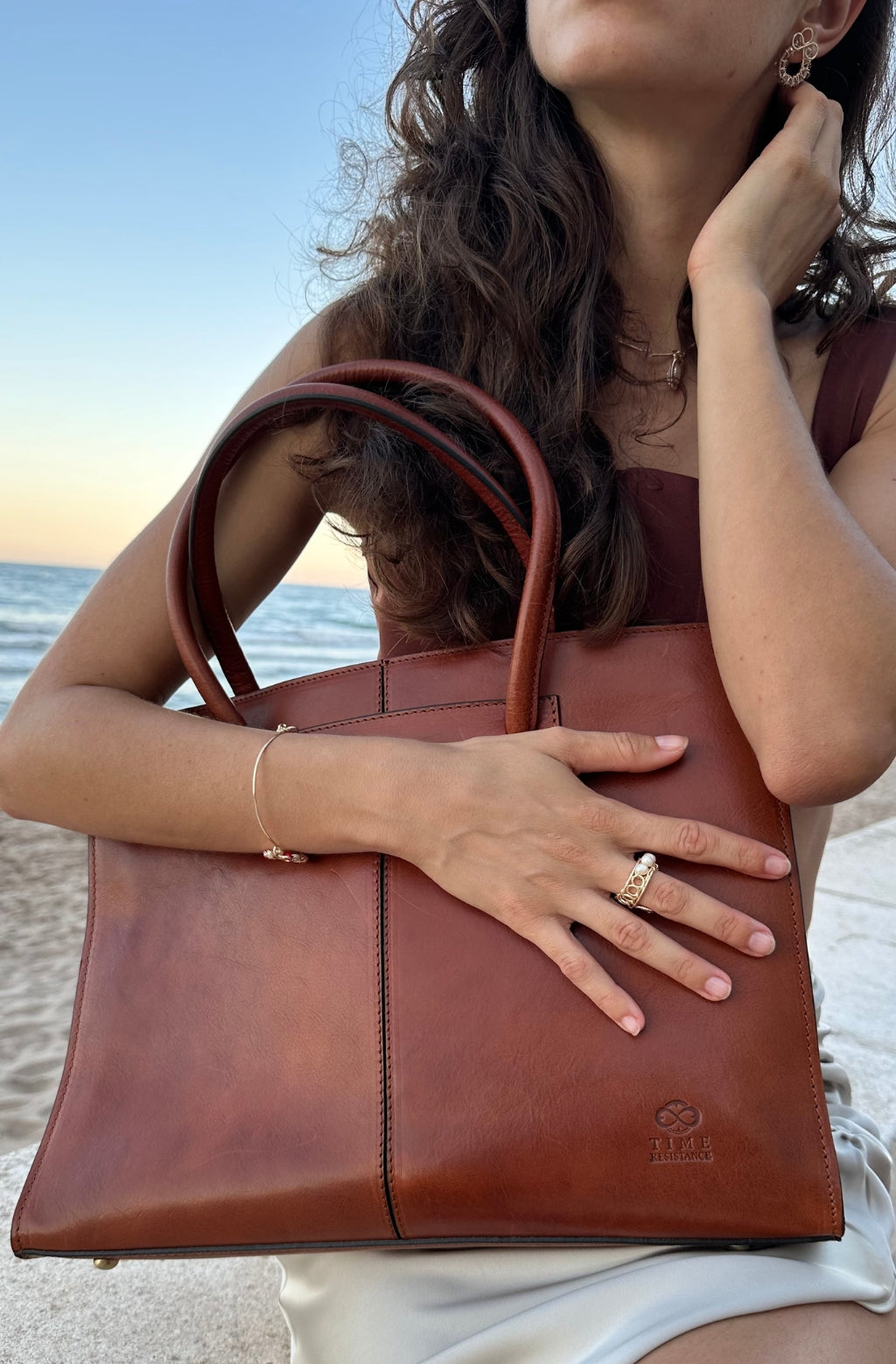 Time Resistance sélectionne un cuir italien Vachetta : pleine fleur, tanné végétal et teint à la main. Il se pare d’une patine noble avec le temps.