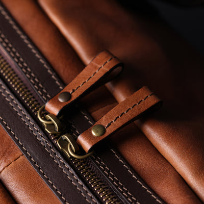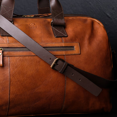 Time Resistance sélectionne un cuir italien Vachetta : pleine fleur, tanné végétal et teint à la main. Il se pare d’une patine noble avec le temps.