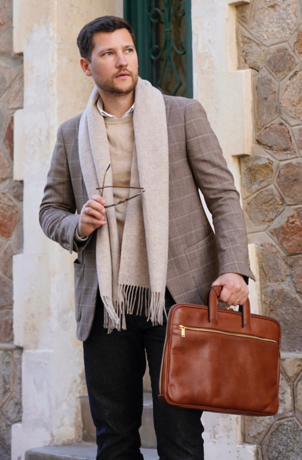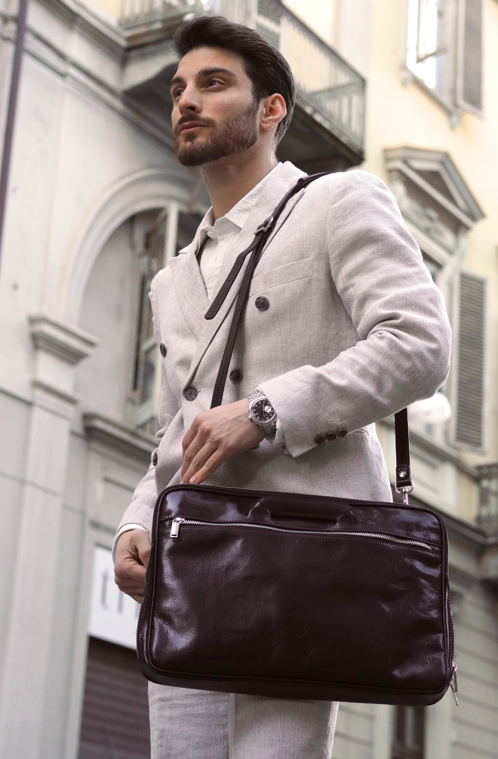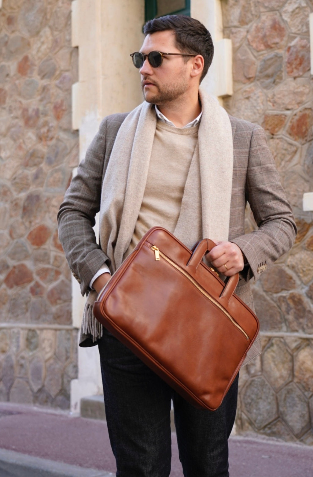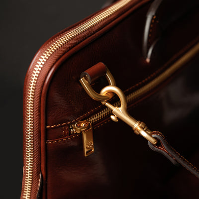 Time Resistance sélectionne un cuir italien Vachetta : pleine fleur, tanné végétal et teint à la main. Il se pare d’une patine noble avec le temps.