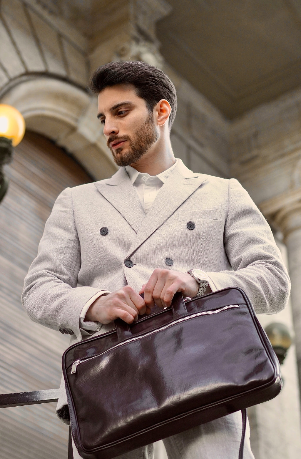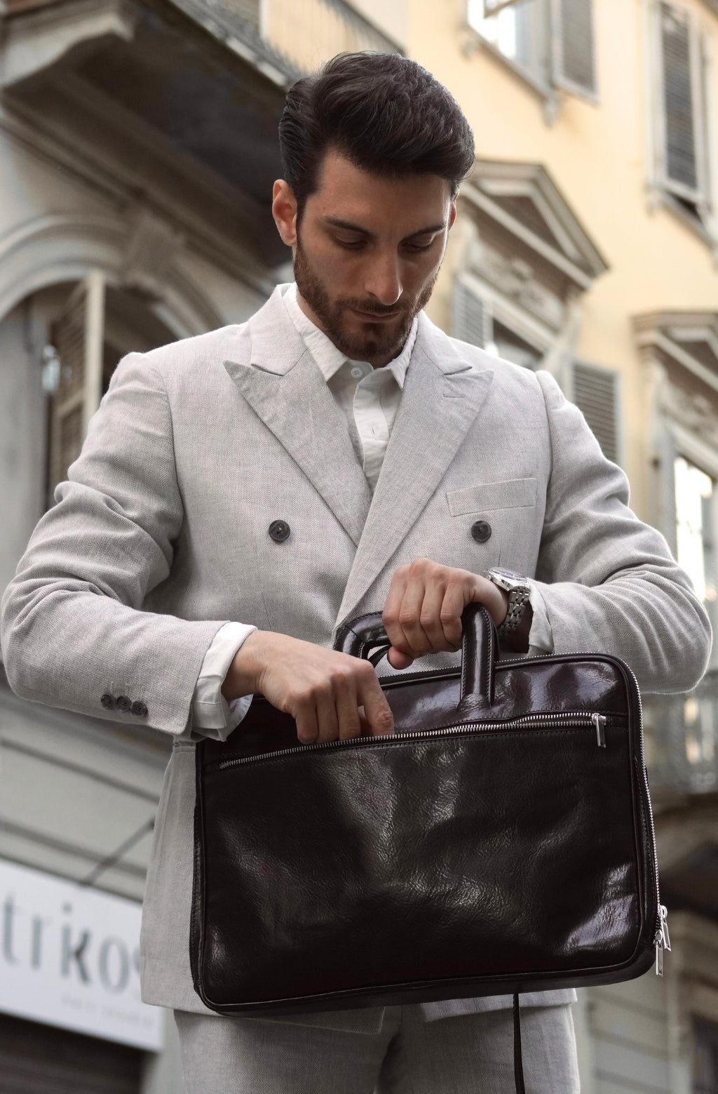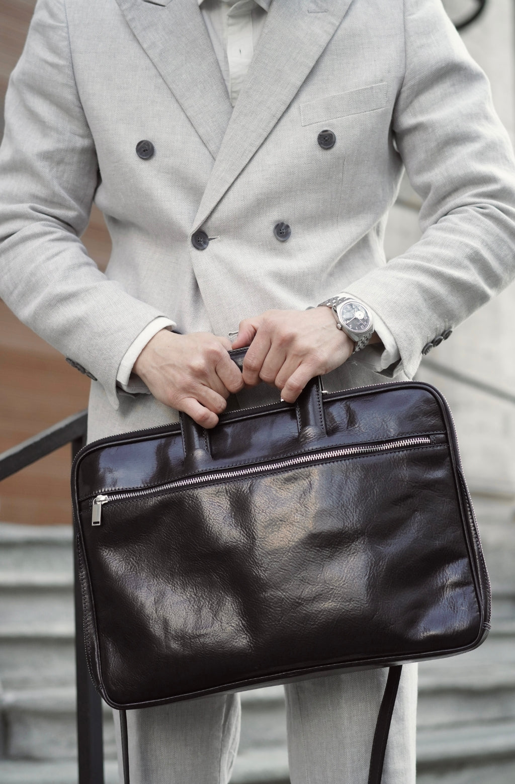 Time Resistance sélectionne un cuir italien Vachetta : pleine fleur, tanné végétal et teint à la main. Il se pare d’une patine noble avec le temps.